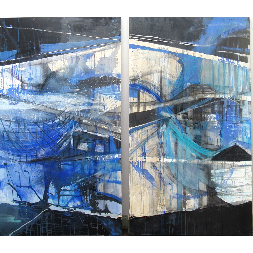 En su obra, Peirano explora, desde la superficie, la abundancia o escases del agua. Aplica cuidados y técnica de colores y texturas que se transforman, logrando un encuentro entre la inmensidad del agua y el perfil estático de una lejana ciudad. De su lado Kahn se sumerge en el agua y adopta distintas expresiones. Puede lograr una delicada y superficial estabilidad o se adentra en las profundidades de paisajes desiguales para iluminar la igualdad que le rodea.